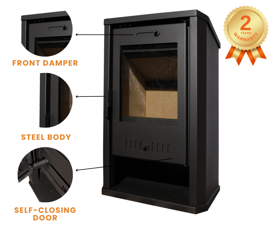 Denna ugn kombinerar effektivitet, säkerhet och design – ett perfekt val för dig som vill ha pålitlig och ekonomisk uppvärmning med stil.